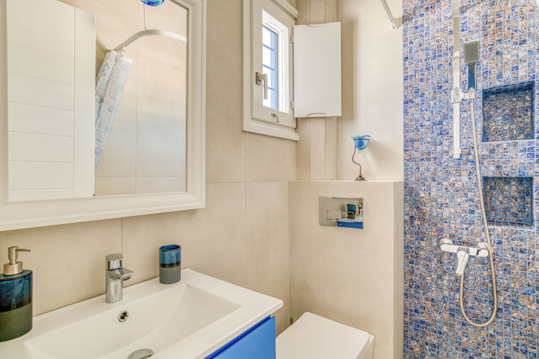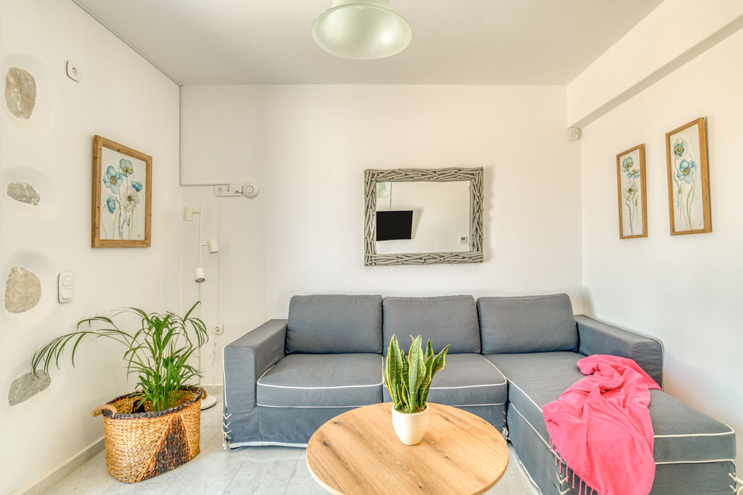 Step inside our three-level house in the heart of Paros. The spacious living room offers a welcoming atmosphere, seamlessly flowing into a fully equipped kitchen, perfect for culinary adventures. The residence includes three bedrooms, designed for relaxation and privacy. The upper floor bedroom features a comfortable double bed, while the other two bedrooms each contain two cozy single beds that can be combined to form a double bed, ensuring a restful night's sleep for all.
