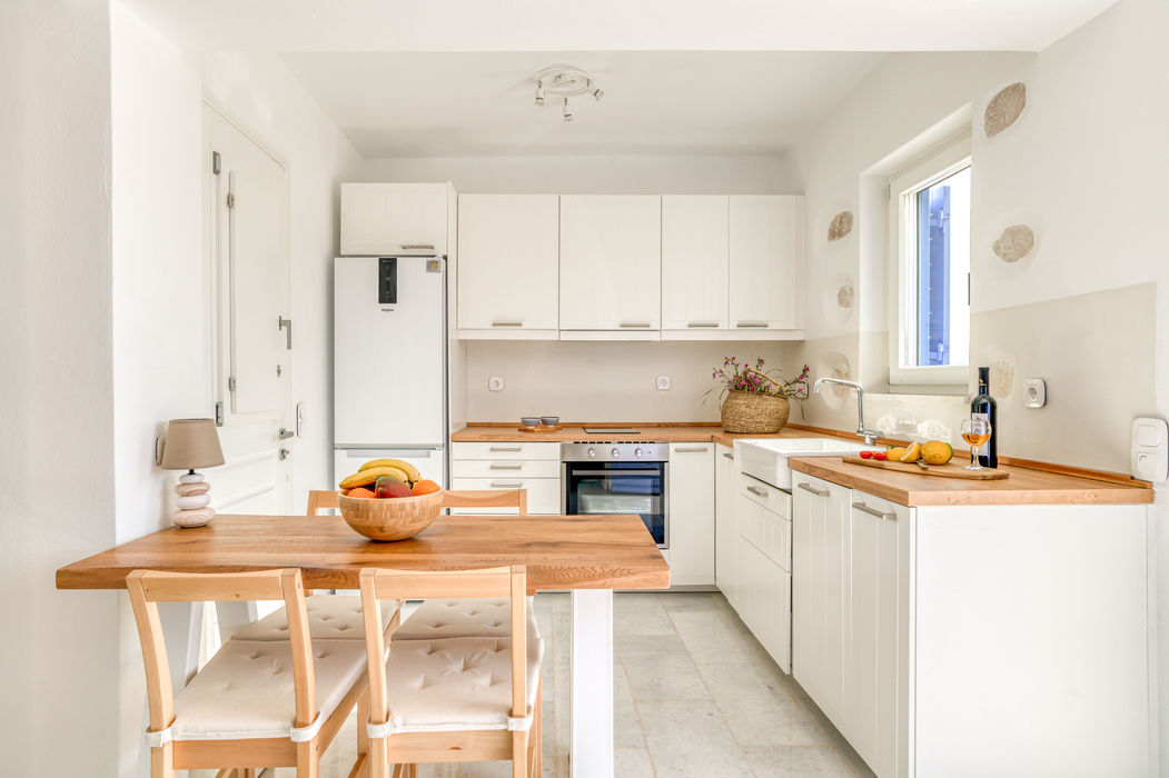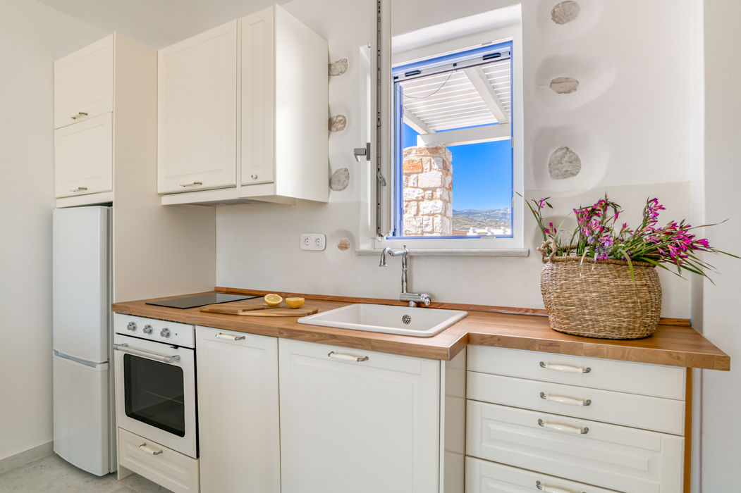 By entering this three level residence, you find yourself in a sun-lit living room with fully-equipped kitchen. Up to six guests can be comfortably accommodated in three well equipped bedrooms, all of them with comfortable double beds for couples and for kids. Each of the bedrooms is accompanied with a dedicated bathroom ensuring convenience and privacy.