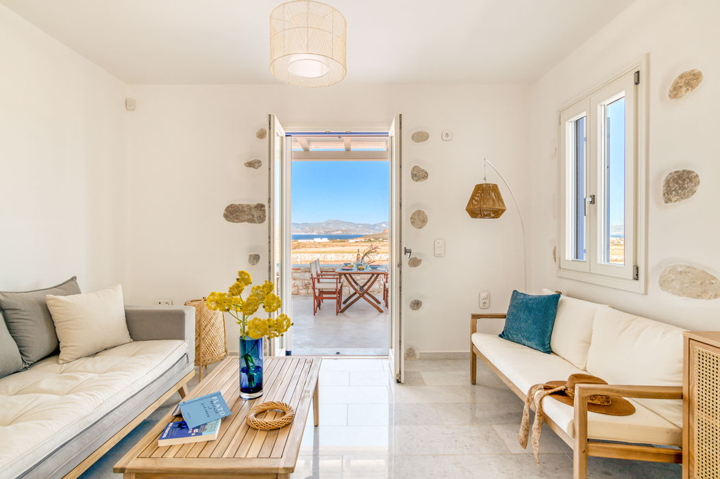 Ciel Villas is ideally located at the southern part of the island, 4 kilometers away from the Airport of Paros and just 7 kilometers away from Paroikia, the main port. Paroikia is the capital of Paros, so if you are in the mood to experience the vibrant nightlife and lifestyle of the island, you can do so with ease.